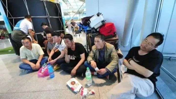 ▲被困机场的中国客工