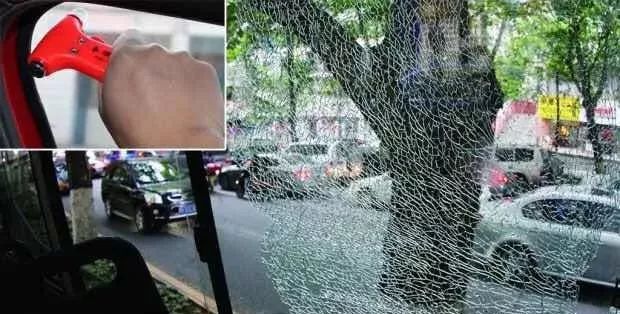 如果车的前后门可以正常打开,大家一定要有秩序离开,千万不要慌乱。如果车门不能打开,一定要记得还有安全锤,用安全锤敲打车窗玻璃的四个角,玻璃破碎后从车窗逃生。火灾烟雾中有大量一氧化碳等有害气体,记得逃生过程中用毛巾或者衣服捂住口鼻并短暂屏气。