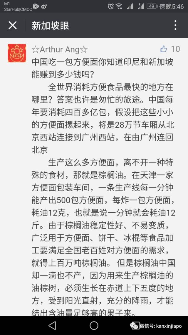 网友Arthur Ang评论出,从一包方便面的故事引发出棕榈油和中国、新加坡、印尼三国的关联。