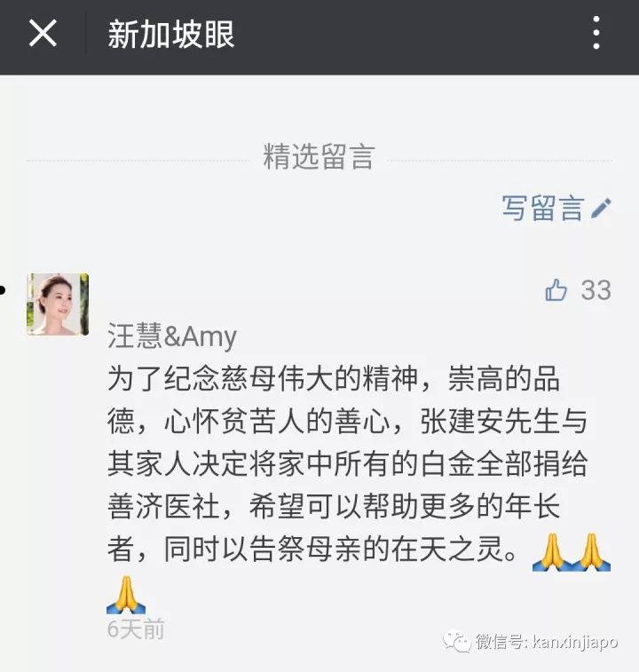 在新加坡,有名望的往生者家属把白金捐给慈善机构的做法,非常普遍,是社会所推崇“大爱”的一种。