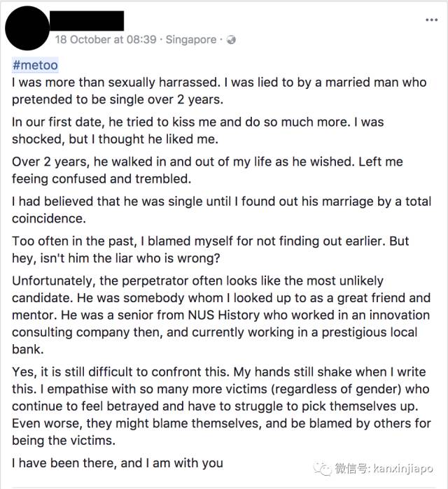 也许是出于人人自危的心情,当推特上发起“我也是” (#MeToo)运动,许多新加坡人也纷纷相应了。