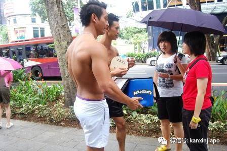 这里常常有商家利用帅哥猛男来当“活广告牌”,推销产品!