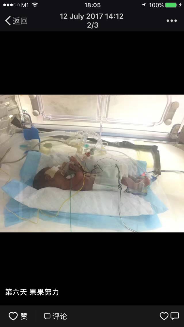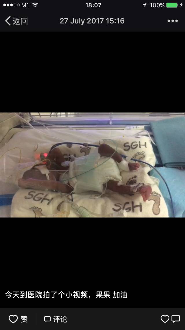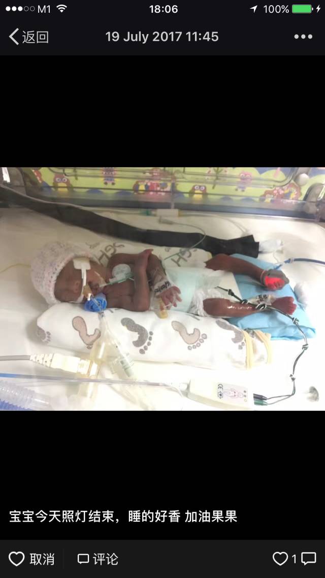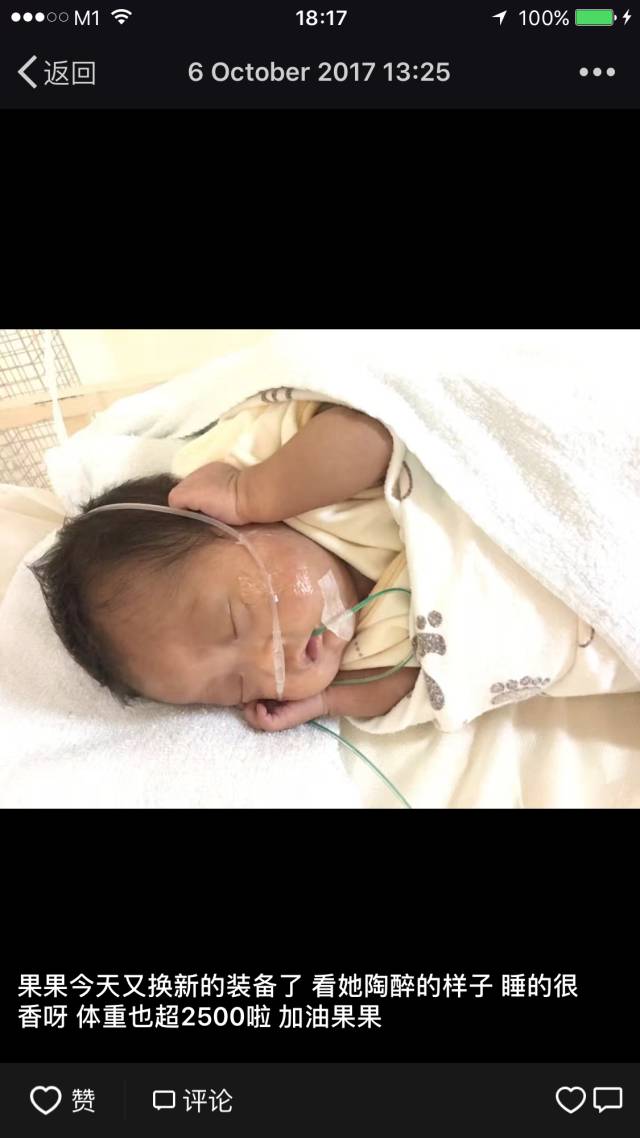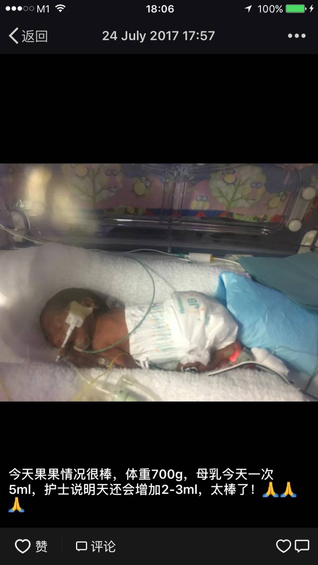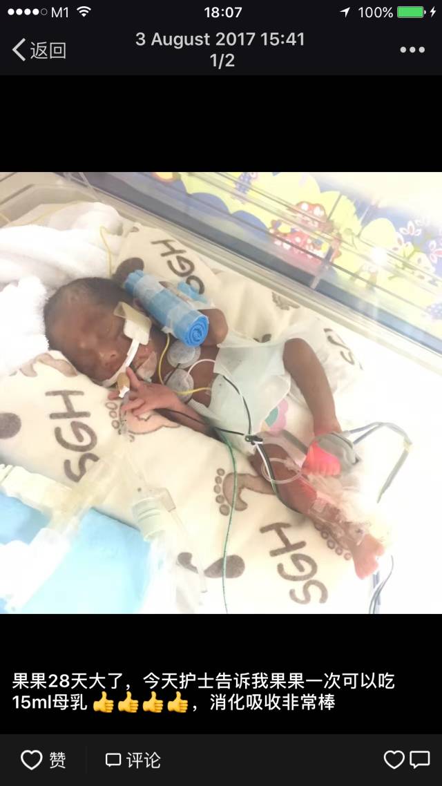 对话中提到的“果果”,就是女儿在新加坡早产了,出生时只有640克我不敢碰中那个早产儿。7月7日,在妈妈肚子里没待满6个月的她提早降临人世,那时的她,是这样的~