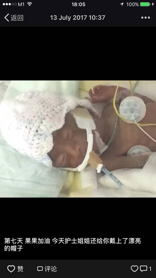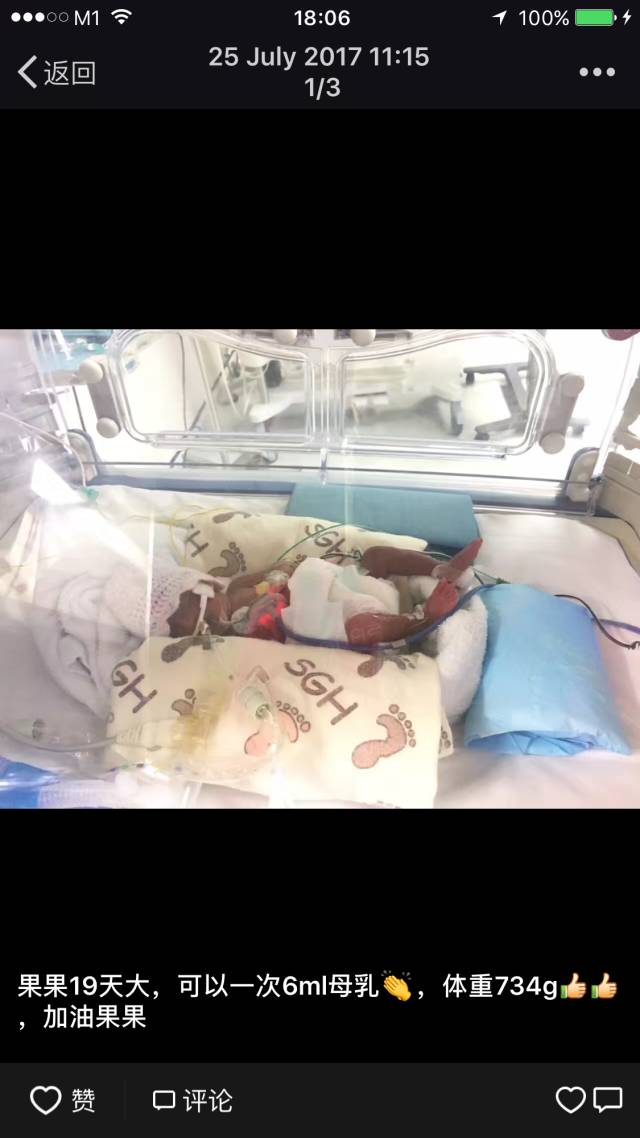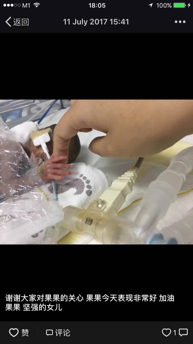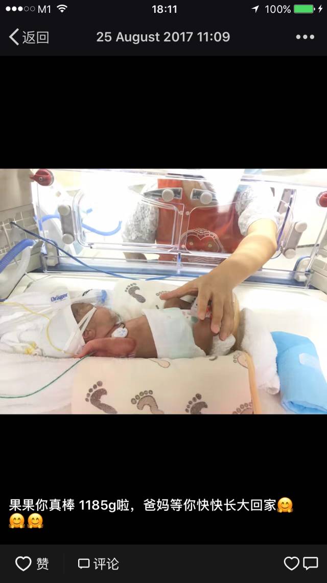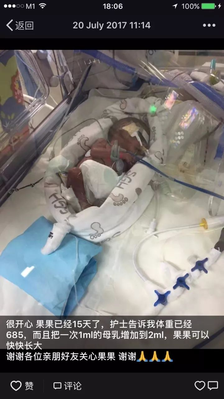 对话中提到的“果果”,就是女儿在新加坡早产了,出生时只有640克我不敢碰中那个早产儿。7月7日,在妈妈肚子里没待满6个月的她提早降临人世,那时的她,是这样的~