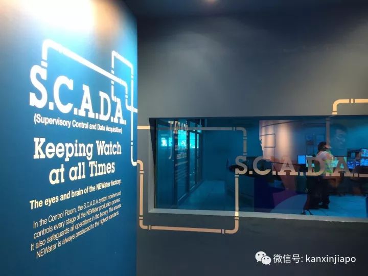 新生水厂的监控控制和数据收集系统(SCADA)。透过玻璃窗,可以看见工作人员的一举一动,就像墙上标语所说“Keeping Watch at all time”。其实整个展览厅,就建在24小时不停歇运作的新生水厂之上。