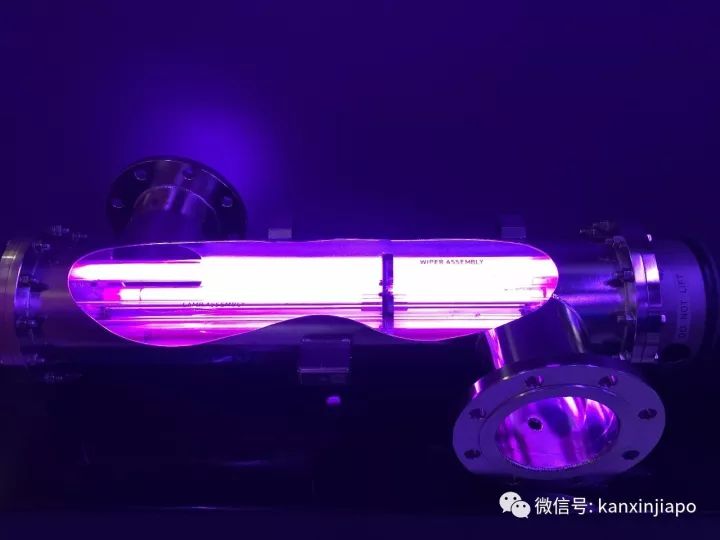 第三步,紫外线消毒。虽然经过前面两个步骤,已经达到国际通用饮水标准了,但安全起见,还要经过下面这个比太阳紫外线强100倍的照射仪,只须1秒钟就能杀灭所有可能潜在的细菌。