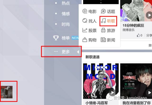 方法2:点击【发现】,左边菜单栏【更多】-【听歌】