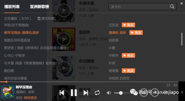 比如,最近人气翻升的嘻哈王子潘玮柏的新歌《稀罕没理由》,在它上面也能听到(别被“购买”两字吓到);若要下载,需2元人民币。