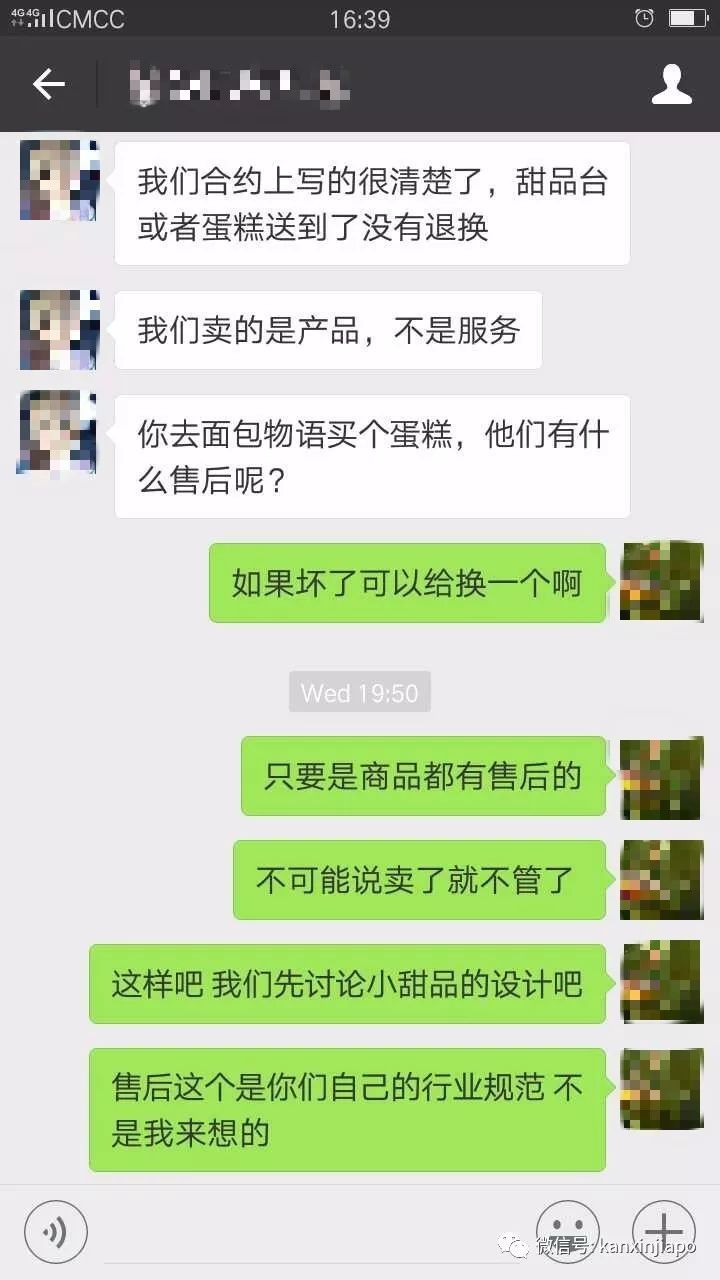 当时是在朋友看到别人发的一张图 觉得还挺好看的 就联系她做我的甜品台 交了定金 因为是定制 我说那口味是不是的根据我的喜好来调 可以做试吃吗cupcake 那种 她说不行 我说那我没吃过你家的 你也没有店 又不让试吃调味道 那玩意婚礼当天送来的蛋糕我们不喜欢 或者蛋糕有问题怎么办 她说不可能 我说有售后吗 她说没有 然后我说那怎么办 她说你去找别家吧 就再没回过信息 而且我现在在国内 婚礼前才回去 也没法去找她