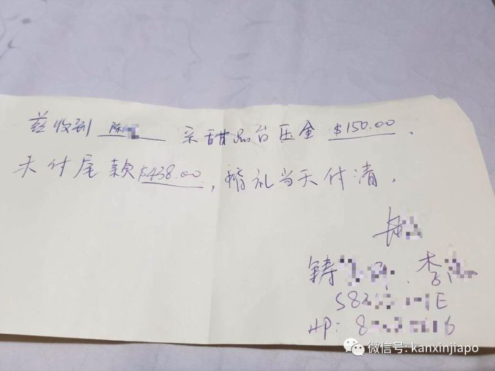 给定金的时候就写了一张收据 然后签了她的中文名和IC 都是中文的