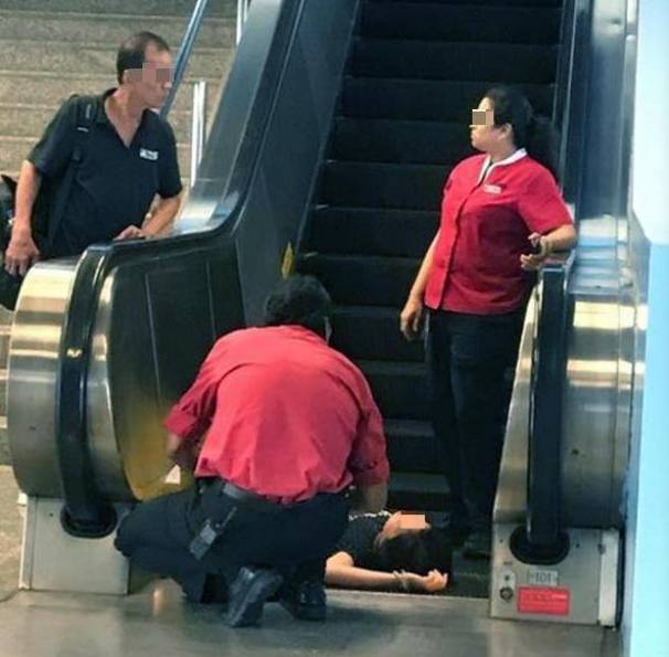 当场脸部朝上动弹不得,虽然地铁站职员在发现意外后立即赶到,尝试要叫醒她,却不成功,赶紧报警求救。