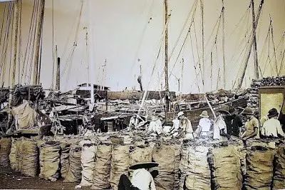 ▲(丹戎禺的河畔一包包的火炭。图片来源:NAS)