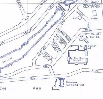 1978年的新加坡街道图除了标明学校的位置外,还可看到学校附近河畔的Sampang Place, Tongkang Place,Twakow Place,Mangchoon Place,Kampong Kayu。