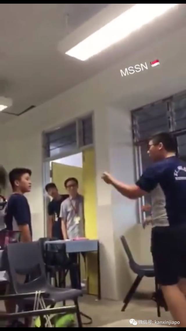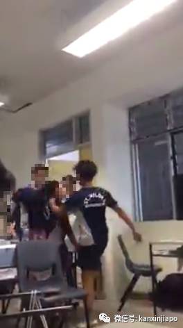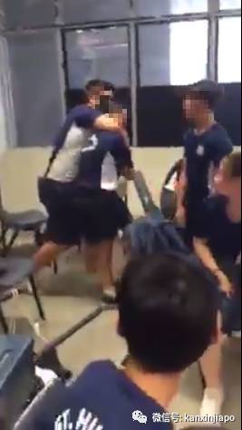 两人欺负了小个子男同学超过一分钟,也不见有人(包括那位老师)上前劝架,最后还是一名高个子男生(就上图中站老师身旁那位)见义勇为,从门外走进课室,劝开两名闹事的男生并把他们带出课室,一场闹剧才结束。
