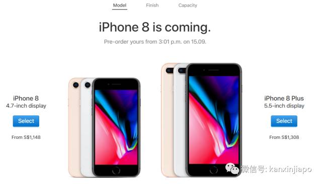 其中,iPhone8将在9月15日开定,售价1148新币起。
