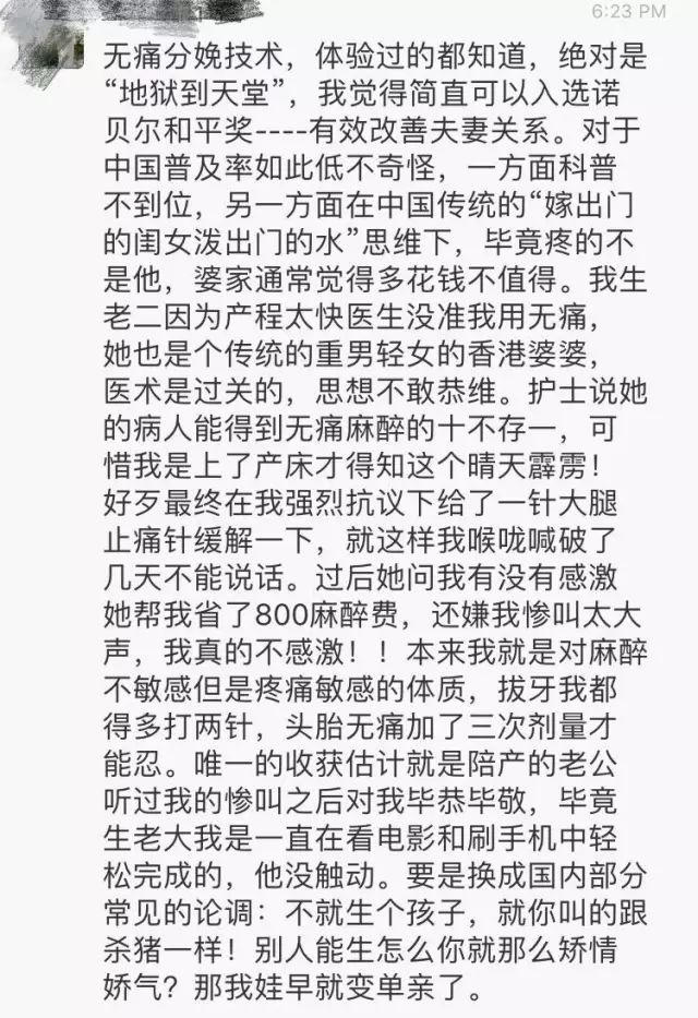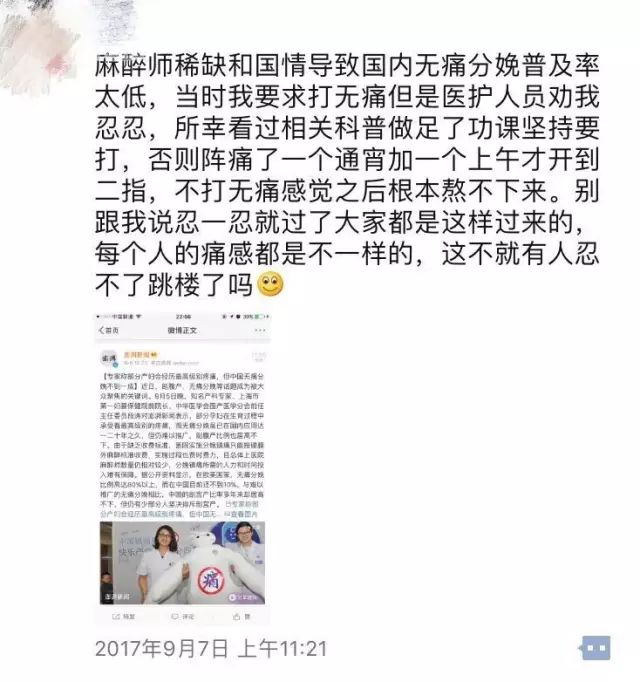 而用过无痛分娩的两位妈妈发出了这样的言论