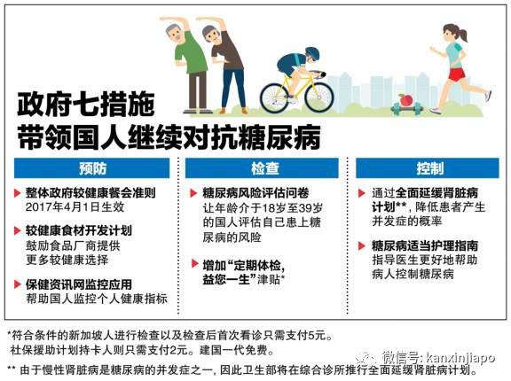面对越来越多的新加坡人患上糖尿病的现况,卫生部自去年起成立糖尿病预防及治疗全国工作组(Diabetes Prevention and Care Taskforce),宣布向糖尿病宣战,要加大力度保障国人健康,远离糖尿病,也要帮助糖尿病患者更好地控制病情,以免病情恶化,发生严重的并发症。 这也是政府第一次以“政府整体行动”(Whole-of-Government)的方式,针对一种慢性疾病拟定长期的对策, 并由政府部门,私人企业,病患群体,看护机构共同参与,以实现全面对抗糖尿病的目标。
