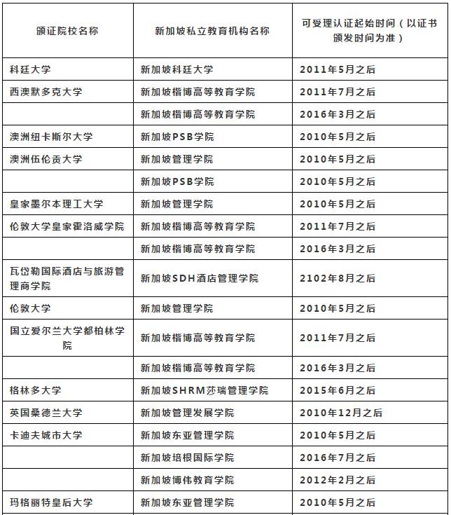 注:Kaplan新加坡的合作大学英国诺桑比亚大学,英国埃塞克斯大学,新加坡PSB学院的合作大学英国考文垂大学、英国爱丁堡龙比亚大学和澳洲拉筹伯大学等高校目前均已获得中国教育部认证。
