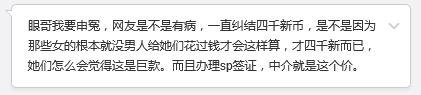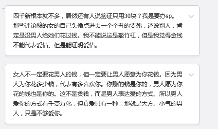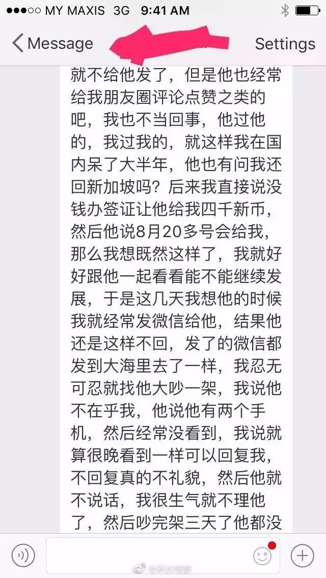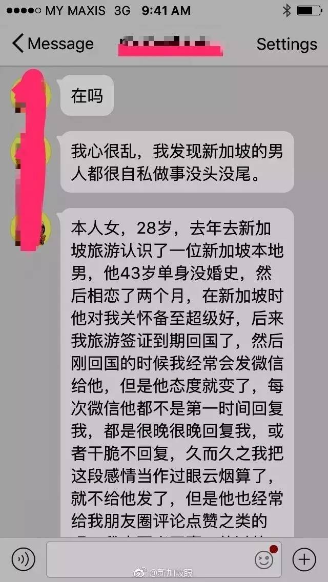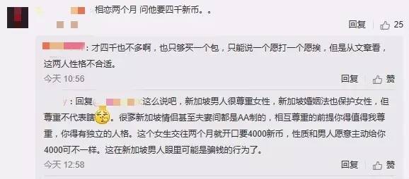 一名网友匿名发来自己的经历,新加坡眼原函照登,不代表同意这名网友意见。对于男女感情,是否能用金钱来衡量,不同的人观点不同。