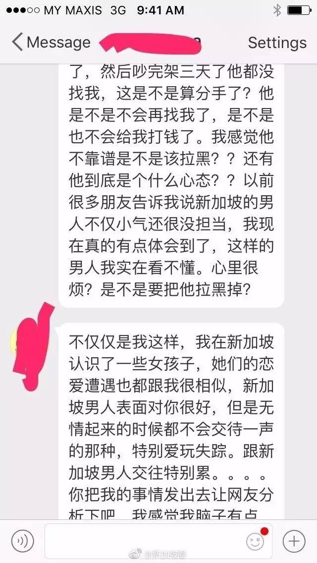 “我发现新加坡的男人都很自私做事没头没尾”