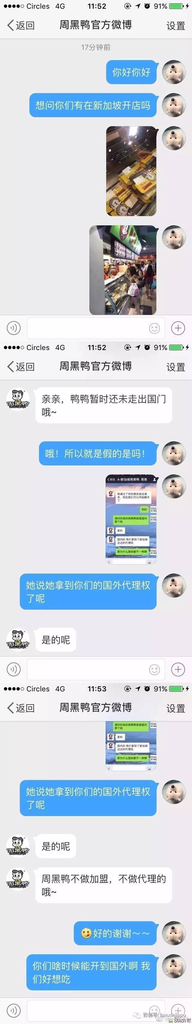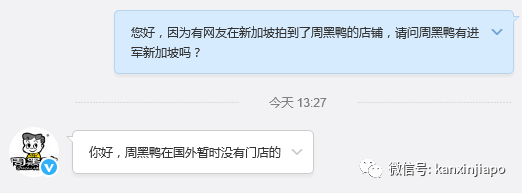 这就有点尴尬了~正牌周黑鸭多方辟谣,自己在国外暂时没有门店(当然就包括新加坡),可新加坡的周黑鸭,看他们打的广告、怼顾客的样子,底气很足啊~