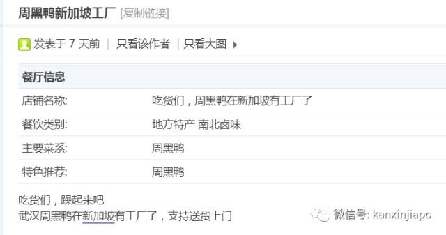 就连在论坛也能搜到,周黑鸭在新加坡有工厂了!