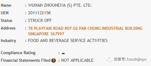 查询新加坡会计与企业管制局(ACRA)的公司资料,赫然发现曾经在新加坡注册过的“WUHAN ZHOUHEIYA”,早已取消注册。