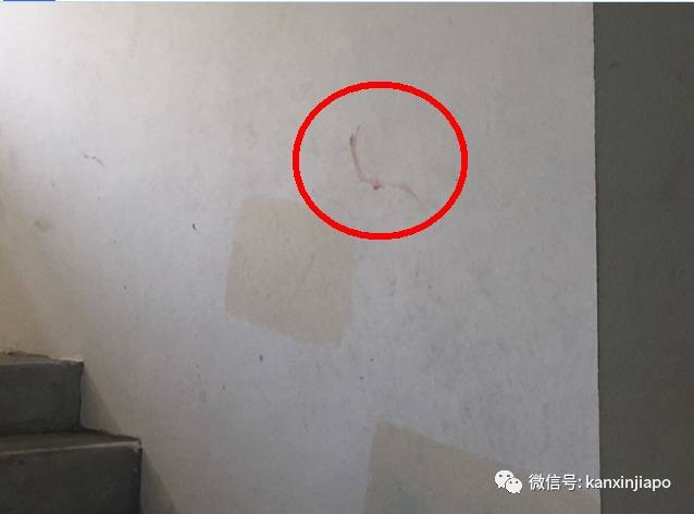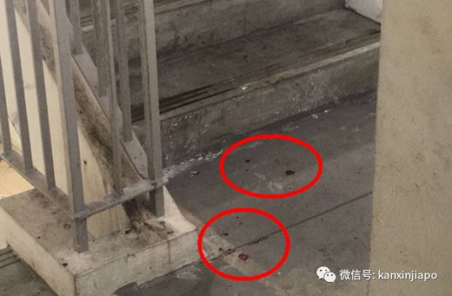 在组屋三楼的楼梯上还发现了一滴滴血迹,四楼电梯外的墙上也有血迹。