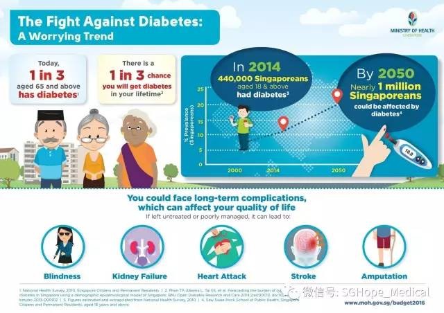 要知道,糖尿病可是在新加坡排名第一的慢性疾病,根据新加坡国立大学下属的苏瑞福公共卫生学院(Saw Swee Hock School of Public Health)根据一项研究做出的预测称,到2050年新加坡预计可能多达100万名成人受糖尿病困扰(今天你减肥了吗?小心糖尿病找上你哦),而新加坡总人口到那时可能还不到600万。正因如此,新加坡在2016年6月成立糖尿病预防及治疗工作组,积极展开各项工作,向糖尿病宣战!