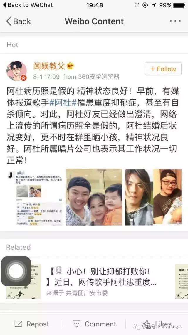 消息一出,网上顿时炸开了锅,阿杜到底怎么了?希望阿杜快快好起来!