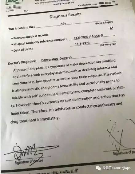 7月31日,一则歌手阿杜的抑郁症病情诊断书在网上疯传,诊断书显示“患者目前情绪低落,兴趣明显衰退,意志活动减退,食欲减退,头脑反应慢,自卑自责,对生活充满悲观,偶尔有自杀倾向,但无自杀企图及行动,自制力完整,需要立即进行心理治疗与药物治疗。”病历单下方有疑似阿杜的签名。