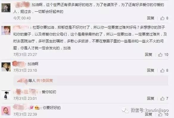 在该图下方的微博评论区可以看到昨日、今日涌现了大量粉丝的留言,网友纷纷对阿杜送去关心和祝福,希望阿杜加油,战胜病魔,快快好起来!