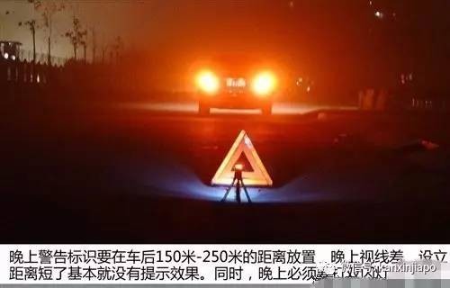 尤其车子若在晚上抛锚,因为能见度差,为安全起见,警示三角牌更要放在百米开外,也要打双闪灯警惕其他司机。