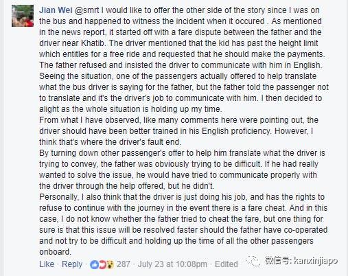 在现场的另一名乘客很快指出,明明是这名家长,拒绝别的乘客帮助翻译,故意把争议升级!虽然巴士司机确实懂些英语会更好,但把这件事闹成现在这样,是因为这名家长“并没有想解决问题”,毕竟,确保乘客都付车资是每个司机的职责!