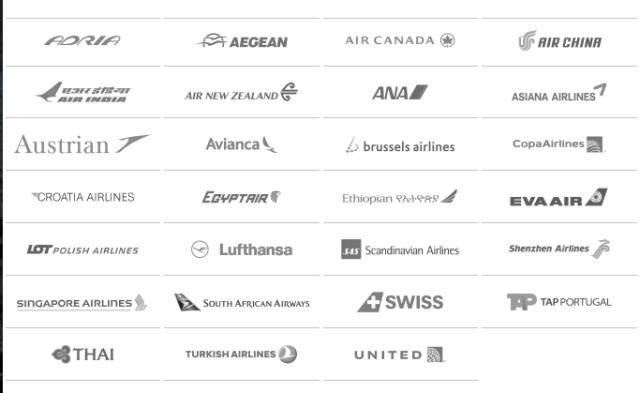 包含了这些中国航空公司:中国国航(Air China) 、深圳航空(Shenzhen Airline)、长荣航空(EVA AIR)等等~ 大家再熟悉不过的新航,也是星空联盟的成员。