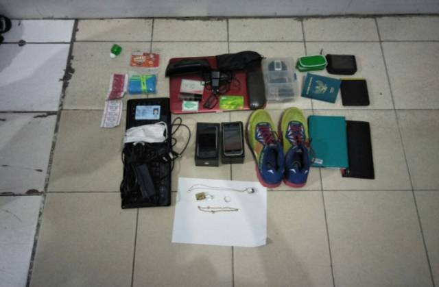 除了现金之外,还从她身上搜到一台笔记本电脑、一个键盘、五只表、两只iphone、一只诺基亚手机、一枚戒指、一条金项链、一个玉镯、以及三只手提包。
