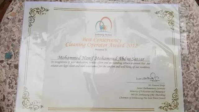 尤其在2011年和2012年,我还因表现好,获得所在义顺市镇会颁发的奖项,不仅有证书还有300元奖金。