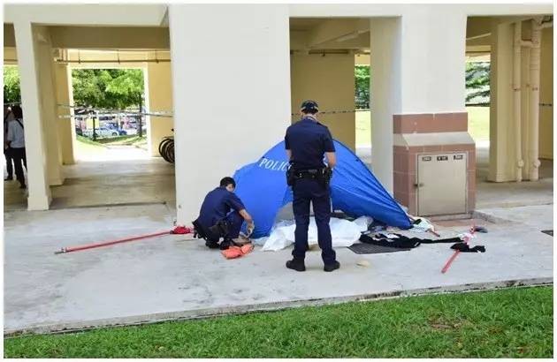 今早10点多,在循环路第45座组屋,住在9楼的85岁奶奶在晾衣时不知何故失足,飞坠而下,当场毙命!从现场照片看,奶奶直接穿破了一楼的外搭帆布,跌落在地,还有一根挂着衣服的竹竿插在外搭棚中。