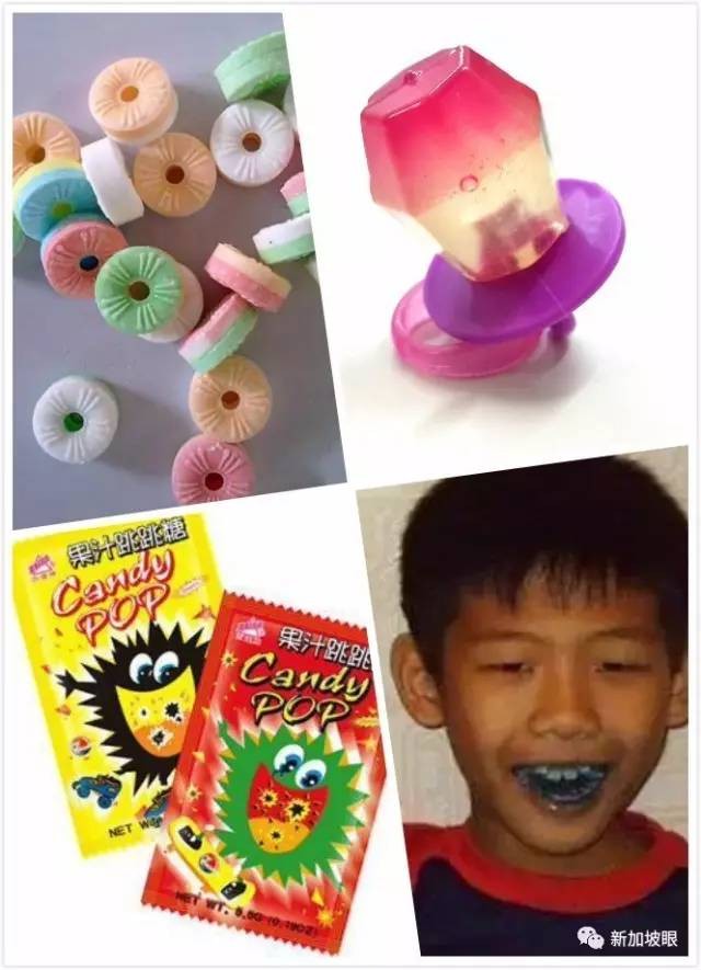 ▲(左上)口哨糖;(右上)戒指糖;(左下)跳跳糖;(右下)吃魔鬼糖后会变这样
