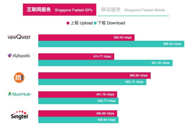 调查显示,从去年第四季到今年第一季,ViewQwest提供了最快的互联网下载速度,以899.35mbps(兆比特)遥遥领先MyRepublic、第一通、星和,以及新电信。