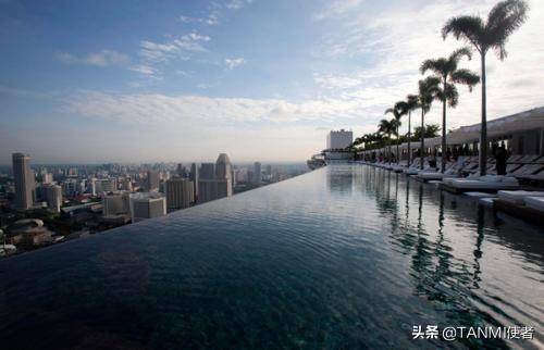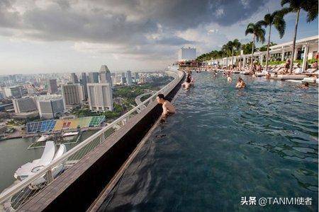 在新加坡,有一座空中游泳池特别受欢迎,位于海湾金沙酒店空中花园里,这个游泳池建在55层高楼的楼顶,长150米,高200多米,是世界上最刺激最奢华的游泳池。