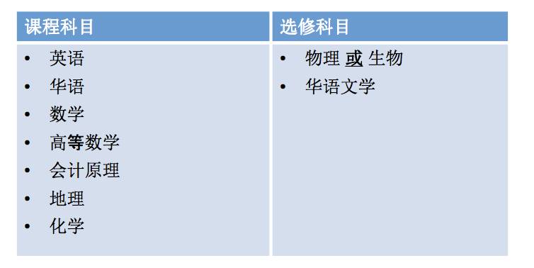 • 此课程注重扎实的英语水平(英语为第一语言的科目)