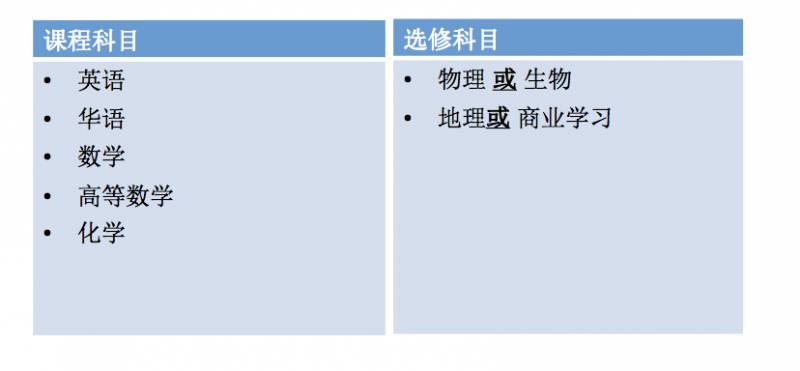 • 国际认可的英国中学课程,相当于新加坡剑桥‘O’水准