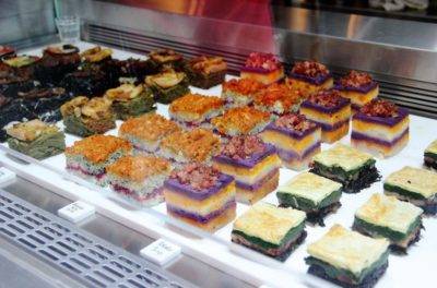 这个美美哒、色彩鲜艳的立方体可不是蛋糕哦,一种改良版本的饭团,重点是口味都非常的奇特哦,椰浆饭味、叻沙味、照烧鸡肉味、柚子三文鱼。