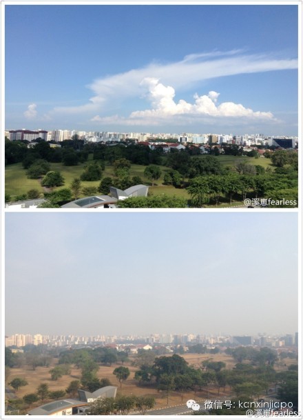 新加坡眼按:新加坡干旱无雨状况持续升级,邻国火点带来雾霾使情况更加恶化。连续两个月无雨,让这个花园城市也难逃遍地荒草和落叶。网友纷纷晒出干旱雾霾前后实拍对比图,触目惊心。新加坡眼在此建议大家节约用水,雾霾严重时减少外出,注意身体健康。如果您也有新加坡干旱雾霾前后的对比图片,欢迎发微博@新加坡眼,或投稿至[email protected],与大家分享。