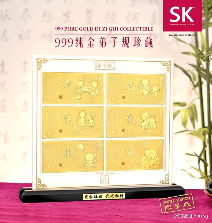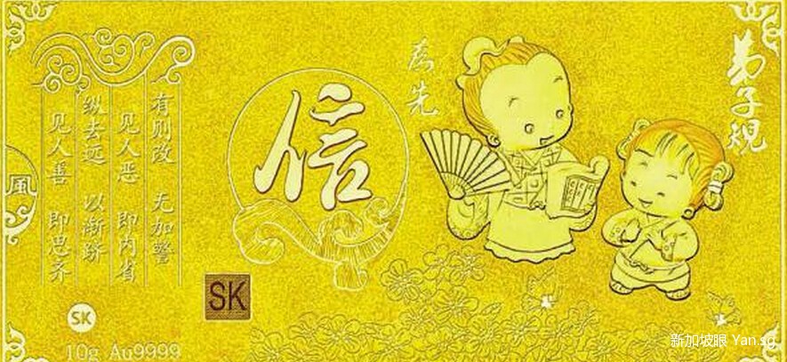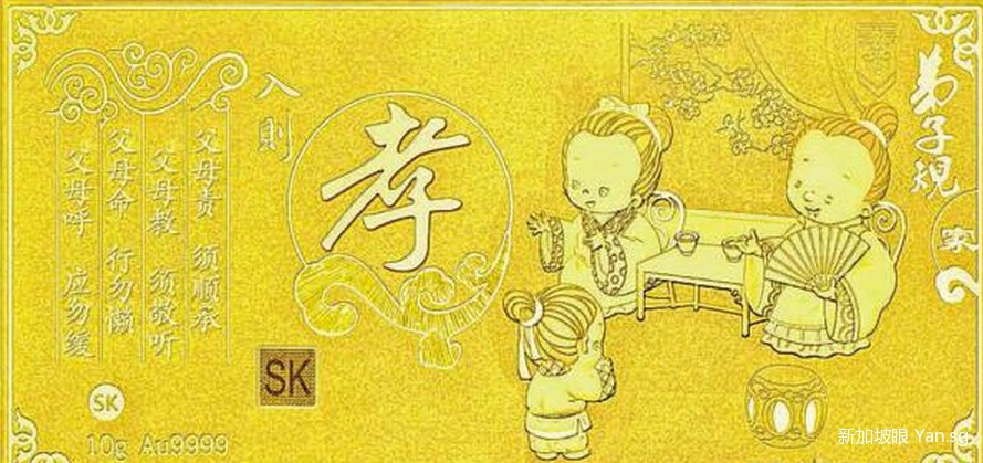 新加坡珠宝品牌SK珠宝推出《弟子规》主题的999纯金金条!摆在家里倍儿有面儿有木有,特别适合有文化的土豪。