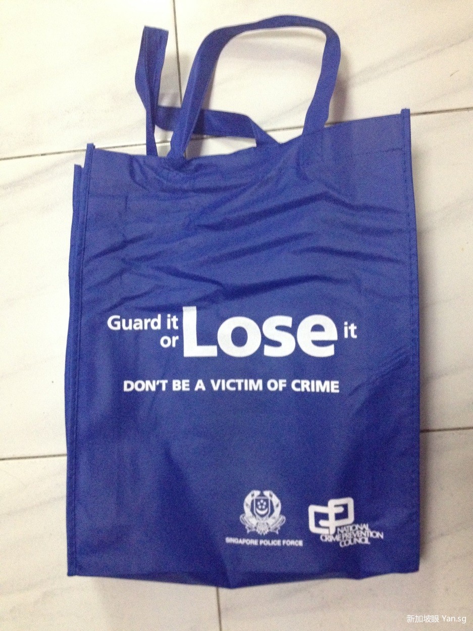 敲门进去say hello,一个帅帅的警察叔叔在那里整理东西,就帮他说我是去collect那个警报器的,然后他问我要了IC,问我住在了哪,最后丢给我一个蓝色大环保袋。