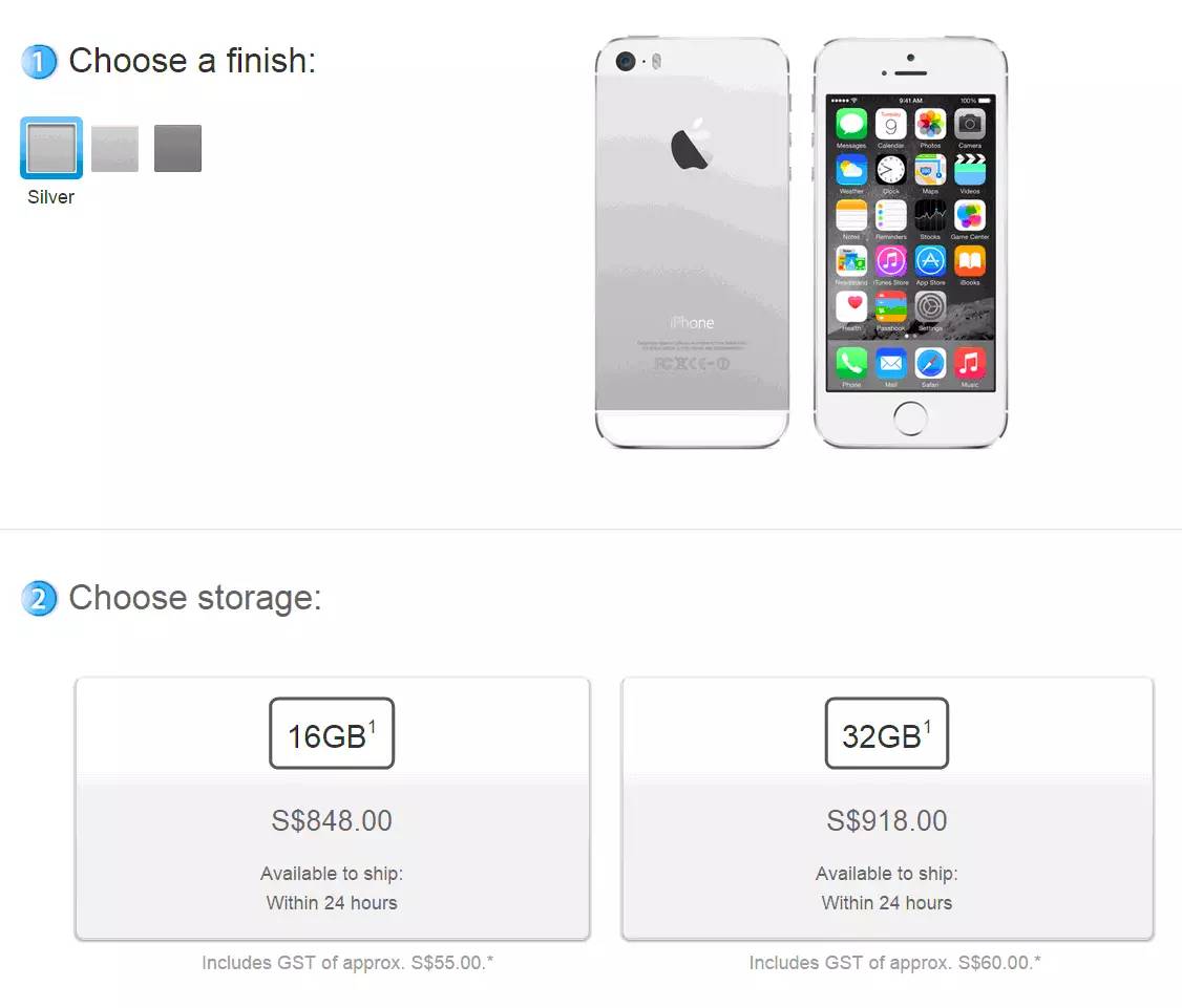 iPhone 6一出,这旧款手机马上就跌价——iPhone 5s售价已调整为848新币起,而8G的iPhone 5c更是低至588新币。着急换手机、牵线没到期、或者不喜欢iPhone 6的网友,不如现在下单购买5s也是非常划算的。该出手时就出手!
