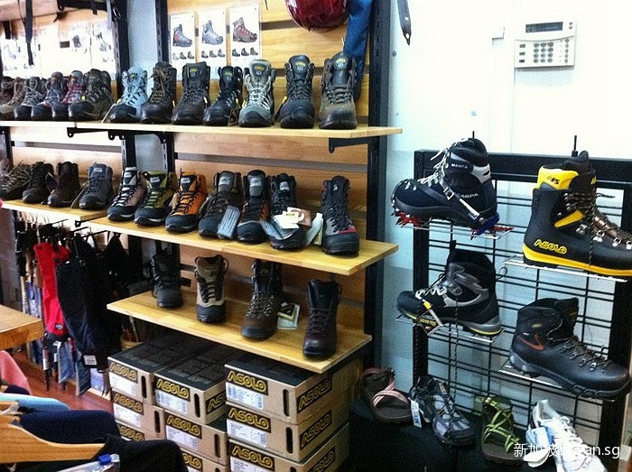 这家店应该是全新加坡做户外鞋最NB的店了,Campers’ Corner、Outdoor Life这些店加起来在户外鞋方面都不及它。Asolo、La Sportiva、Scarpa这三家户外鞋顶级品牌在这家店里均能买到,除此以外偶尔还有少许Lowa、Salomon和Kayland的鞋。它家Asolo的鞋尤其多,常见的一些型号基本都能在这里找到。老板人非常好,混熟了以后去买鞋经常能有低至6、7折的优惠。总之如果你想在新加坡买专业一点的户外鞋,那其它店基本不用看了,直接来这家就行了。