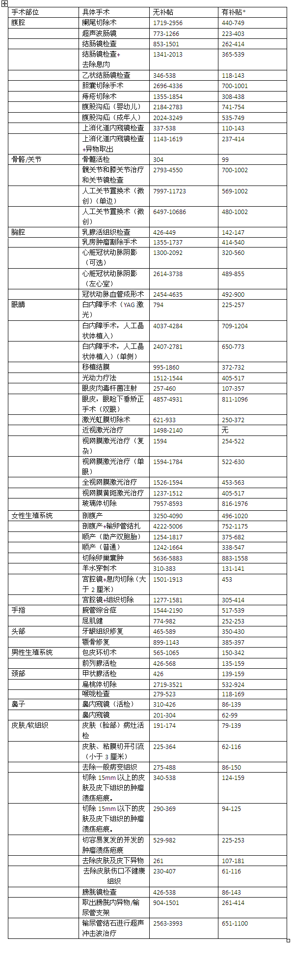 为了保证数据的可靠性,这些总手术费用都是至少通过30个以上的案例总结出来的。
